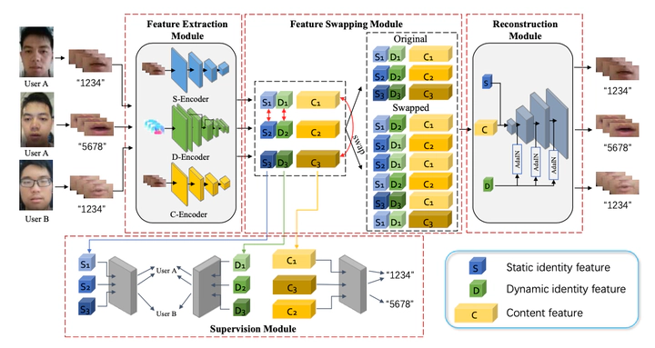 Recent studies have shown that lip shape and movement can be used as an effective biometric feature for speaker authentication. By using random prompt text scheme, lip-based authentication system can also achieve good liveness de- tection performance in laboratory scenarios. However, due to the increasingly widespread mobile application, the authentication system may face additional practical difficulties such as complex background, limited user samples, etc., which will degrade the authentication performance derived by current methods. To confront the above problems, a new deep neural network, i.e. the Triple-feature Disentanglement Network for Visual Speaker Authentication (TDVSA-Net), is proposed in this paper to extract discriminative and disentangled lip features for visual speaker authentication in the random prompt text scenario. Three de- coupled lip features, including the content feature inferring the speech content, the physiological lip feature describing the static lip shape and appearance and the behavioral lip feature depicting the unique pattern in lip movements during utterance, are extracted by TDVSA-Net and fed into corresponding mod- ules to authenticate both the prompt text and the speaker’s identity. Experiment results have demonstrated that compared with several SOTA visual speaker authentication methods, the proposed TDVSA-Net can extract more discriminative and robust lip features which boost the content recognition and identity authentication performance against both human imposters and DeepFake attacks.